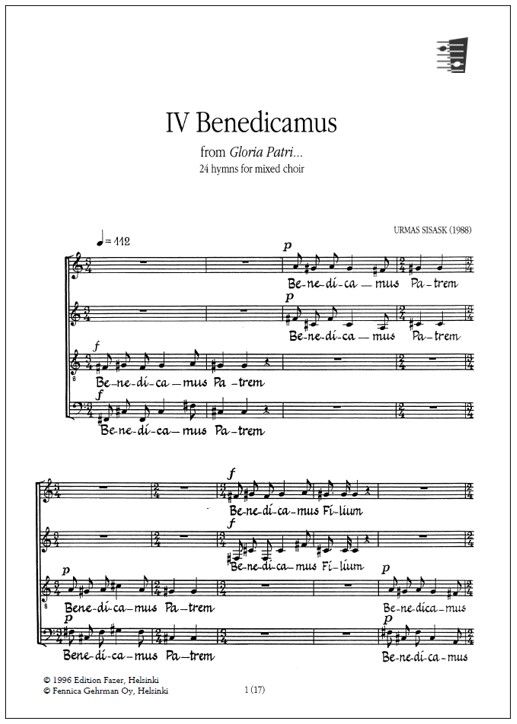 Hymns IV and V from Gloria Patri - Urmas Sisask's extremely popular work consisting of 24 religious songs for mixed choir.
