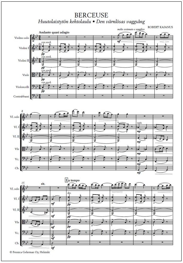 | Title: | Berceuse - Huutolaistytön kehtolaulu / The Pauper Girl's Lullaby - Score & Parts — for violin and string orchestra | ||