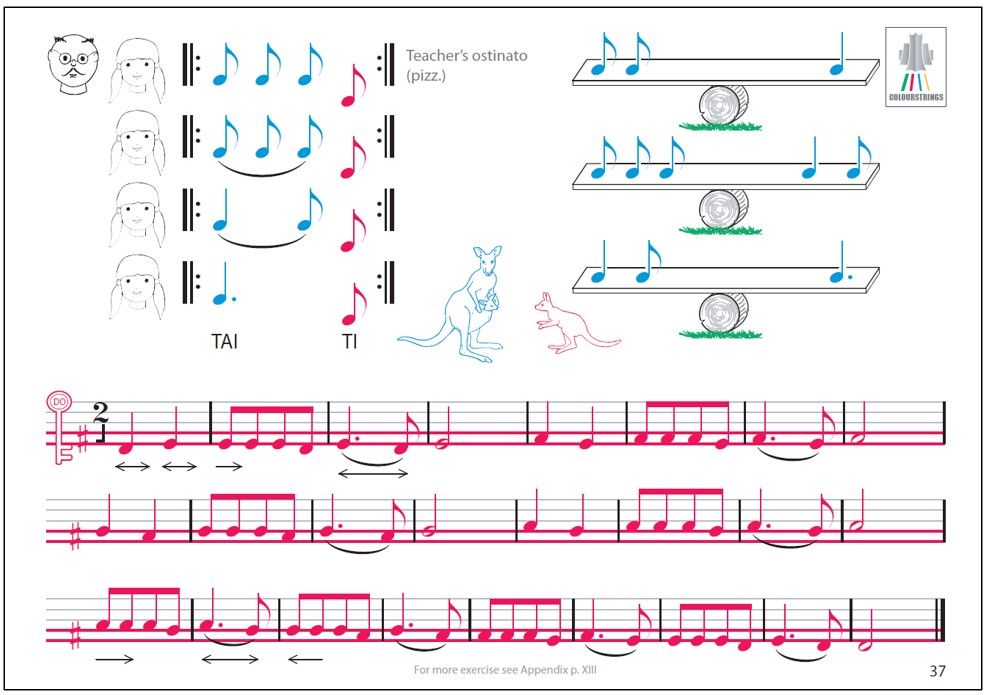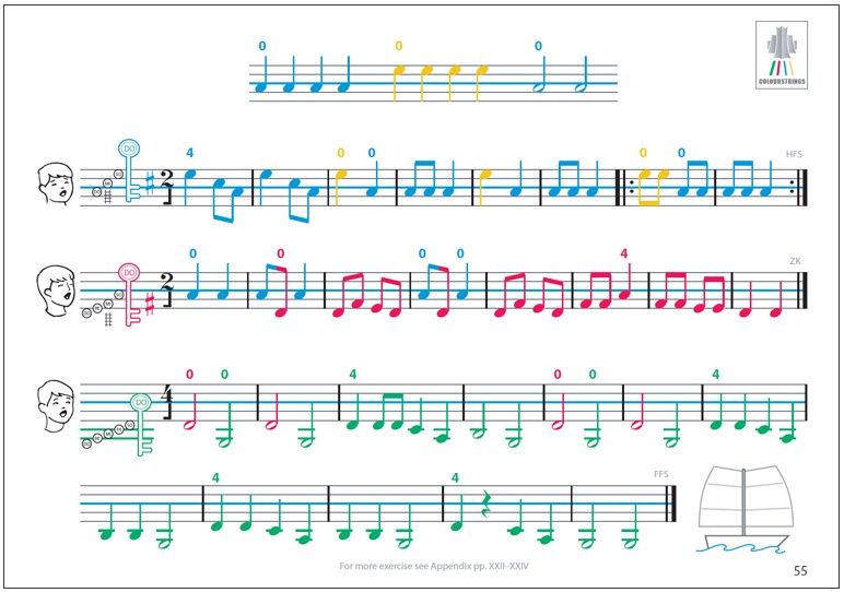 The Colourstrings method developed by Géza and Csaba Szilvay has gained an international reputation and is taught all over the world. The method makes use of colourful teaching materials and supports learning by appealing to many senses. Founded on the principles of Zoltán Kodály, Colourstrings developes the capacity for internal listening: the child learns to visualize the notes heard and to aurilize the notes on the page. Colourstrings is the first violin method that makes use of natural harmonics in first position to teach the left hand optimal, relaxed position.
