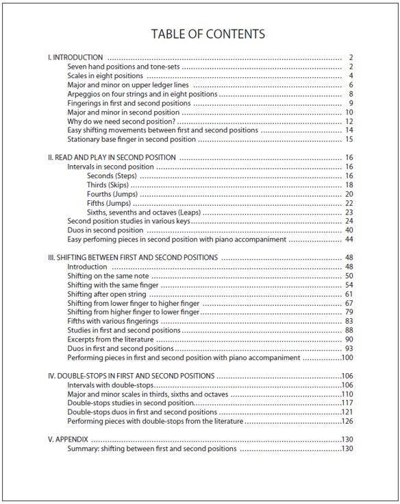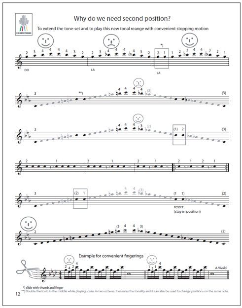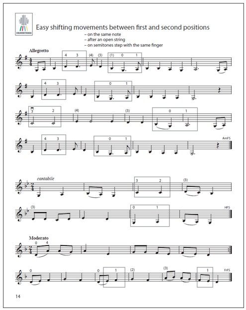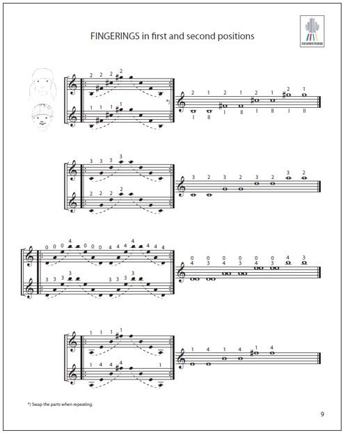 The volume G of the popular Colourstrings violin tutors by Géza Szilvay studies every position of the violin in a separate volume: G1 the second position, G2 the third position, G3 the fourth position, G4 the fifth position and the last one, G5, the high positions (sixth, seventh, eighth). These books form an all-embracing, rich collection of shifting exercises, position playing studies, excerpts from the literature, chamber music (mainly duos), and performing pieces, piano accompaniment offered as a separate publication (9790550116467). The extensive Book G1 - Second position (9790550115941) follows the key principles of Colourstrings methodology - the use of natural harmonics for instance - but it can be fully utilized also without any previous use or knowledge about the Colourstrings method. Have a look inside (click “index” and “sample”) and see the list of performance pieces below - a welcome enlargement in the syllabus.