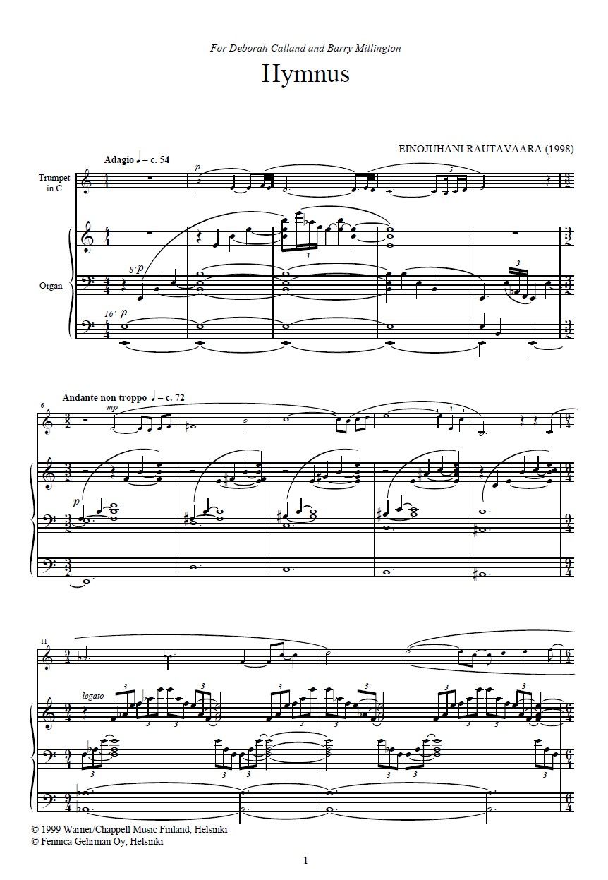This 6 minute mystical work for trumpet and organ was written in 1999 for the The Hampstead and Highgate Festival in London where there was several of Rautavaara's orchestral and chamber works performed. To include a premiere in the programme, festival director Barry Milligan commissioned this piece from Rautavaara. The duration is ca 6 minutes.