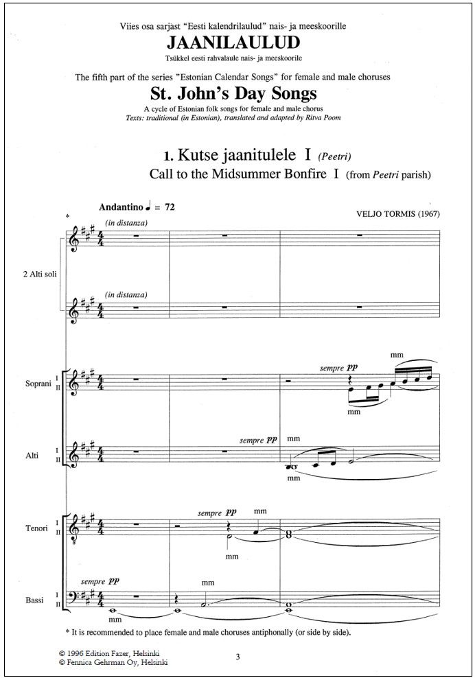 | Title: | Jaanilaulud / St. John's Day Songs - Mixed choir — The fifth part of the series Estonian Calendar Songs | ||