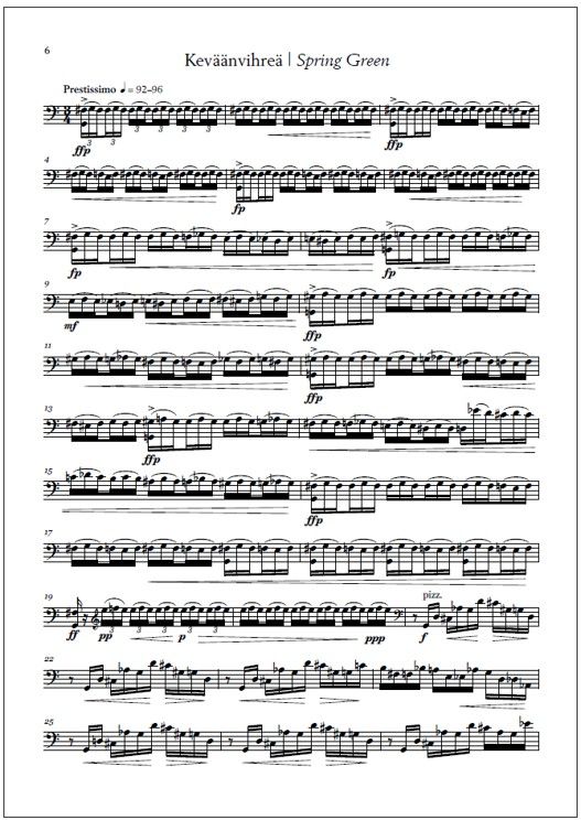 Lauri Mäntysaari's (Kimara (cluster [of colors]) (2025) is a collection of short, color-inspired pieces for cello. They can be performed in any order, played individually, omitted, or scattered throughout a concert program - anything goes!