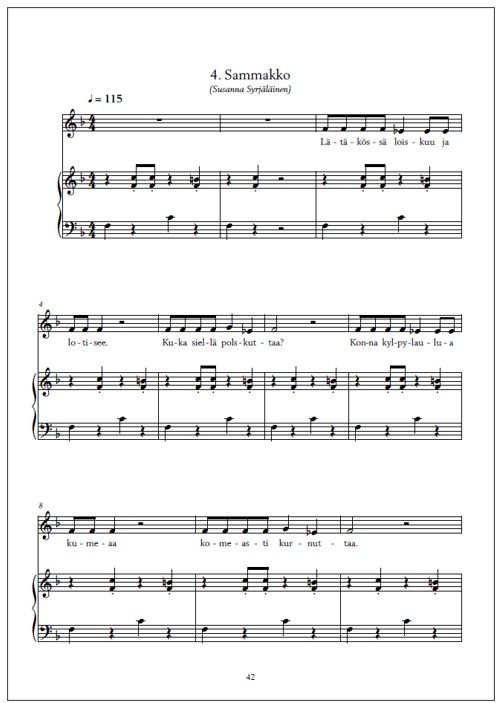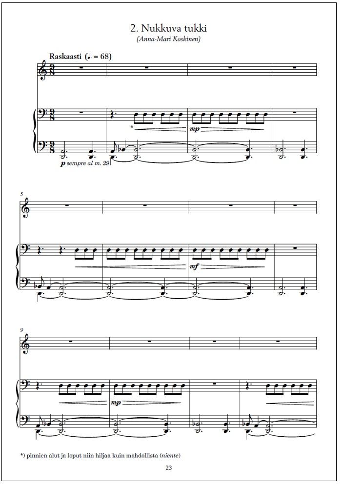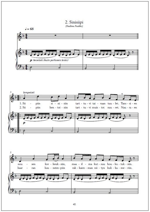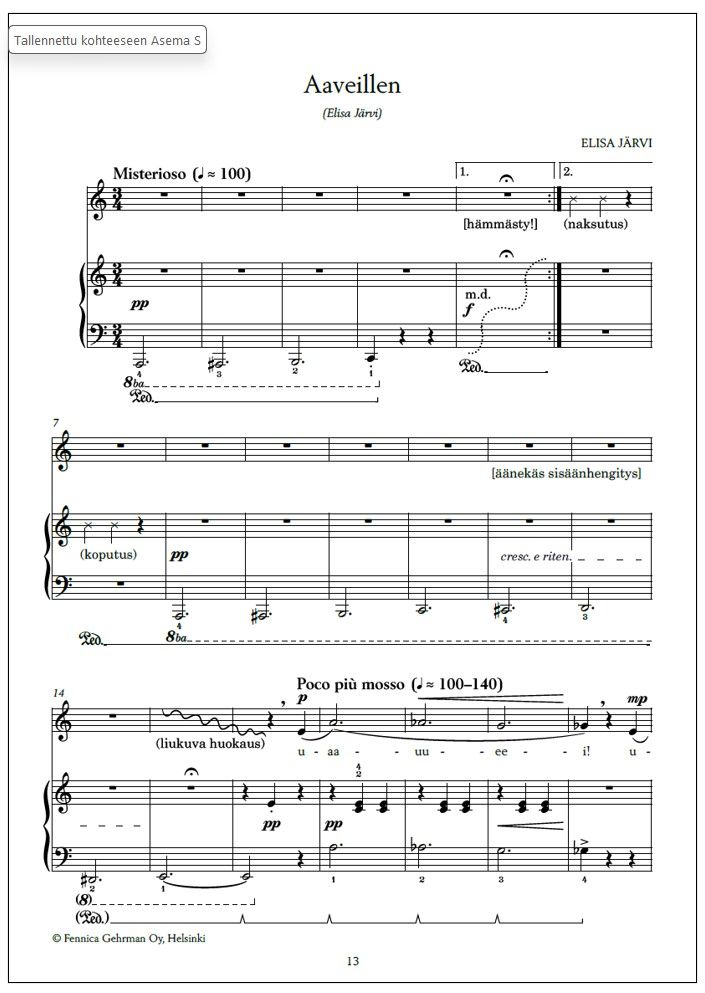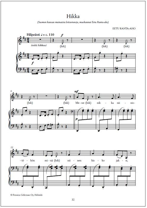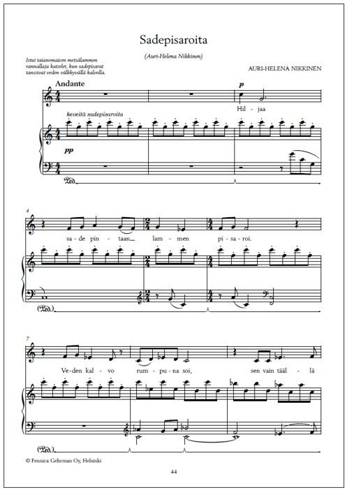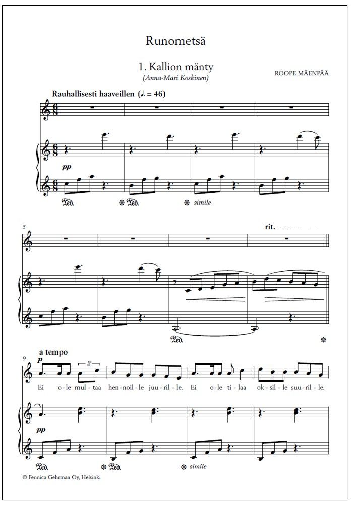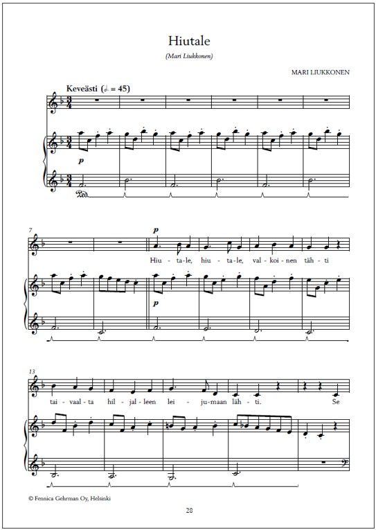 | Finnish library classification: | 78.322 Yksinlaulu pianon tai muun sointusoittimen säestyksellä |