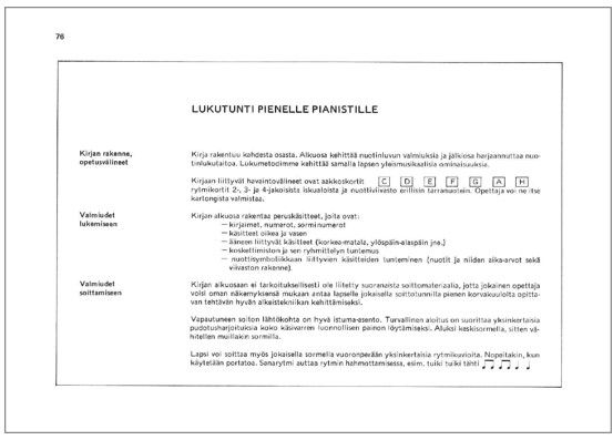 Lukutunti pienelle pianistille on myös alle kouluikäisille soveltuva pianonsoiton alkeisvihko, joka alkaa aapisen tavoin musiikin aakkosista. Kirja soveltuu myös lapsille, jotka ovat aloittaneet pianonsoittonsa korvakuulolta. Kirja soveltuu sekä yksilö- että ryhmäopetukseen. Kirja sisältää 10-sivuisen oppaan opettajan ja vanhempien käyttöön.