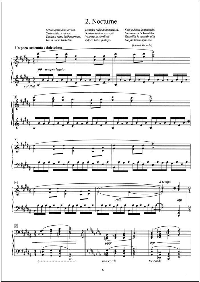 This is Joonas Kokkonen's impressionistic suite for piano from the time when he was 18 years. It was probably inspired by the summers Kokkonen spent at his brother's summer cottage in Pielavesi.