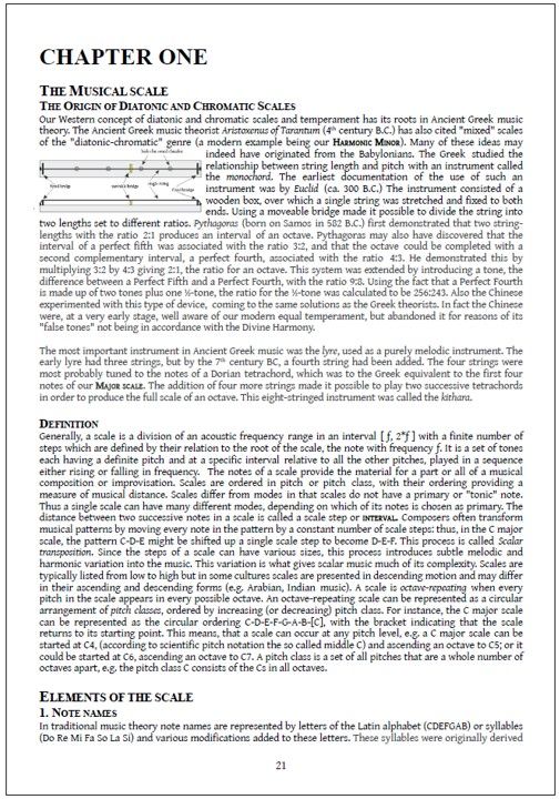 Chapter 1 presents the elements of the scale, the theory of diatonic scales, pentatonic, hexatonic etc scales.