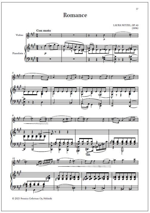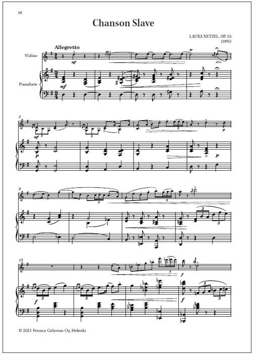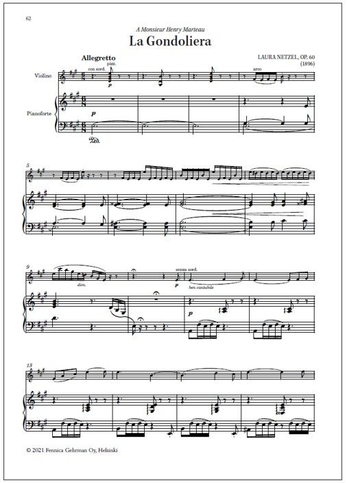 Laura Netzel (1839 -1927): Romance Op. 40 (1896); La Gondoliera Op. 60 (1896); Chanson Slave Op. 53 (1891)