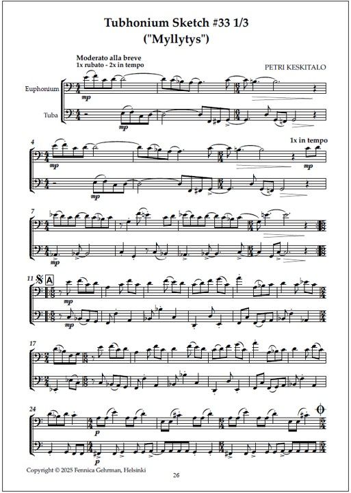 Tubhonium Sketches - Playing score (PDF) for euphonium and tuba