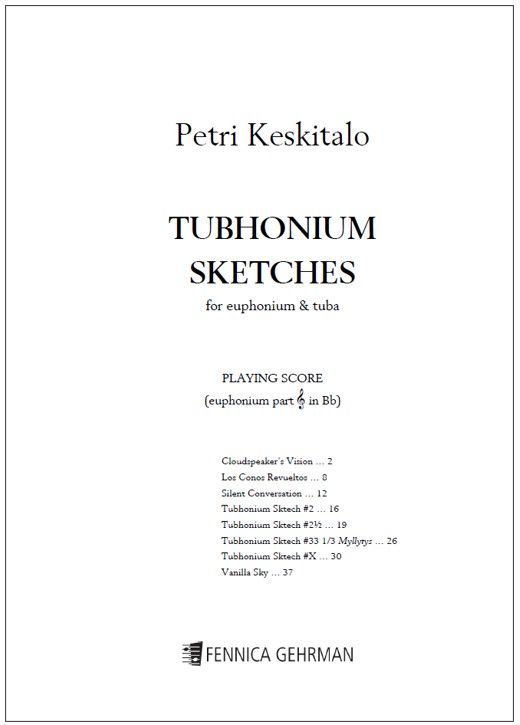 Finnish tuba player Petri Keskitalo (1972-2023) was the principal tuba player of the Helsinki Philharmonic Orchestra for over 20 years. The Tubhonium Duo with euphonium player Jukka Myllys was started in 1996, when the first duet Tubhonium Sketch #2 was premiered. The Tubhonium Sketches consists of eight duos for this lustrous combination: catchy and compelling, they give a glimpse to Keskitalo's extensive musicianship.