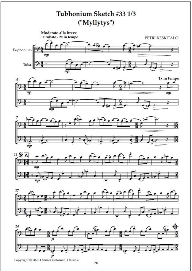 | Title: | Tubhonium Sketches:Tubhonium Sketch #33 1/3 Myllytys (PDF) for euphonium and tuba | ||