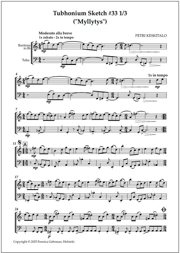 Tubhonium Sketches:Tubhonium Sketch #33 1/3 Myllytys (PDF) for euphonium and tuba