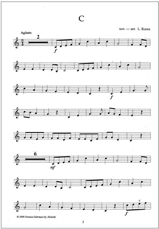 Violin Rascals 4 by László Rossa: violin part for easy Colourstrings concert pieces (revised edition). These brilliantly arranged pieces provide the young pupil a taste of real concert music, while the capacity to recognise notes on the stave and find the appropriate conncection with their position on the fingerboard developes. Based on popular folk and children's songs from England, Scotland, France, Hungary and Finland, each arrangement starts and closes with the tonice of the unaltered diatonic scales used in the piece. The pieces are named accordingly: "A", "B/H", "C" and so on.