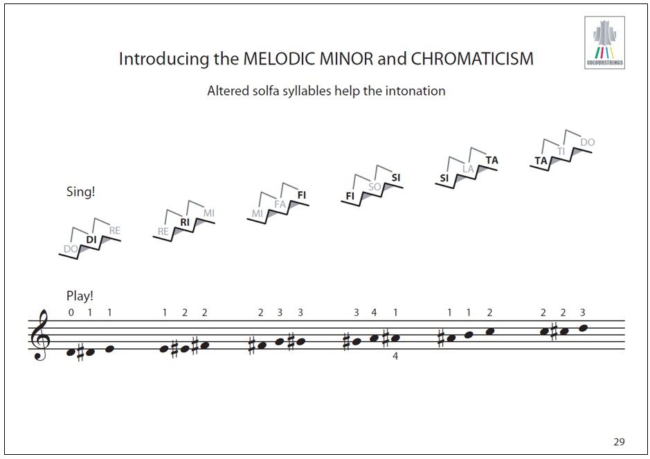 The melodic minor and chromaticism are introduced in the last part of the book, together with the notion of enharmony.