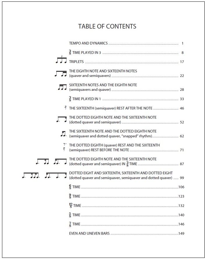 Otsikko Yellow Pages [Keltaiset sivut] viittaa nostalgisiin puhelinluettelon keltaisiin sivuihin, joihin oli koottu kaikki tärkeät palvelut selkeästi ryhmiteltynä. Samaan tapaan toimivat Colourstrings-viulukoulun kolme Yellow Pages -kirjaa, joissa viuluopettajat ja -oppilaat oppivat johdannon, harjoitusten ja etydien, kansanmusiikki- ja viulukirjallisuusnäytteiden, kamarimusiikin ja esityskappaleiden avulla pulssin, tahtiosoitusten ja tahtilajien, eri rytmikuvioiden ja ornamenttien sekä jousituslajien laajan teknisen perustan, musiikin ja yhteismusisoinnin pysyessä koko ajan mukana. Klikkaa ”Table of contents” nähdäksesi ensimmäisen, perusrytmejä monipuolisesti läpikäyvän 1. kirjan pedagogisen sisällysluettelon.
