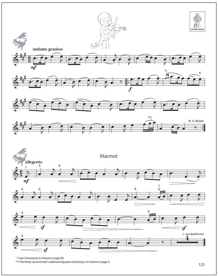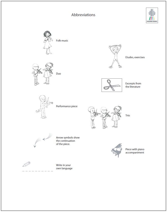The piano accompaniments of the performance pieces of Yellow Pages I, II & III are available as a separate publication: Yellow Pages of the Colourstrings Violin School, Piano Accompaniments (ISMN 9790550110069).